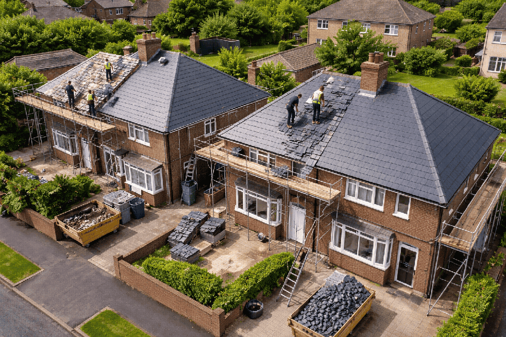 A full re‑roof is the best way to restore the strength, appearance, and weatherproofing of your property. We strip the old roof back to the rafters, inspect the structure, and rebuild using high‑quality materials that meet modern standards.
